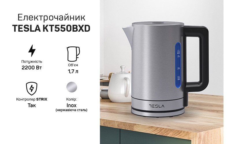 Хочете гарячого чаю чи свіжої кави? Використовуйте електрочайники Tesla, щоб швидко закип’ятити воду та насолодитися заслуженим відпочинком.