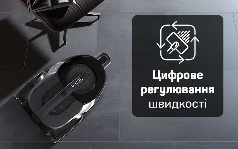 Точне прибирання завдяки цифровому регулюванню швидкості: легко підбирайте потужність всмоктування для ідеального результату на будь-якій поверхні.