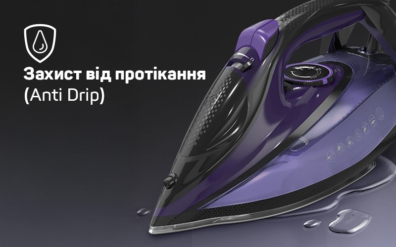 Функція Anti Drip запобігає витіканню води при низьких температурах, не допускаючи появи вологих плям на тканині. Вона забезпечує більш ефективне та безпечне прасування, захищаючи ваш одяг від пошкоджень.