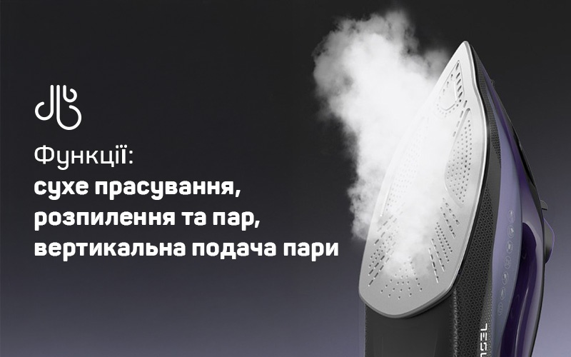 Функції: сухе прасування, розпилення та пар, вертикальна подача пари
