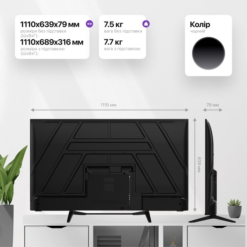 підставка, пульт ДК, батарейки, інструкція, гарантійний талон |