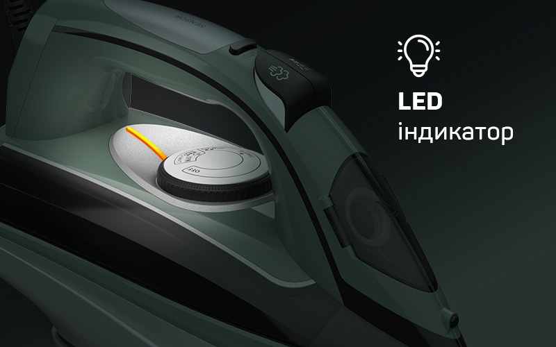 Світлодіодний індикатор показує стан праски, інформуючи, коли вона нагрівається або готова до використання. Ця функція забезпечує зручніше та безпечніше прасування, чітко демонструючи момент досягнення оптимальної температури.
